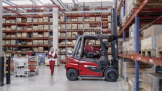 A Linde Motion Detection rendszer ellensúlyos targoncákhoz készült, meglévő flottákra utólag is felszerelhető. Nincs szükség a hátramenet során az amúgy is gyakran magas raktári zajszintet folyamatos és zavaró figyelmeztető hanggal még tovább növelni. Ezenkívül a rendszer érzékenyíti a targoncavezetőt és a gyalogosokat, hogy a veszélyes helyzetekre és a haladási útvonalukra fokozottan figyeljenek oda a raktárban. Azáltal, hogy a tipikus veszélyzónákról és veszélyes helyzetekről a gyalogosok is figyelmeztetést kapnak, a résztvevők hosszabb távon meg is tanulják ezeket. Ez hozzájárul a magasabb szintű raktári biztonsághoz, a balesetekből eredő állásidők csökkentéséhéhez, és az anyagáramlás fenntartásához.